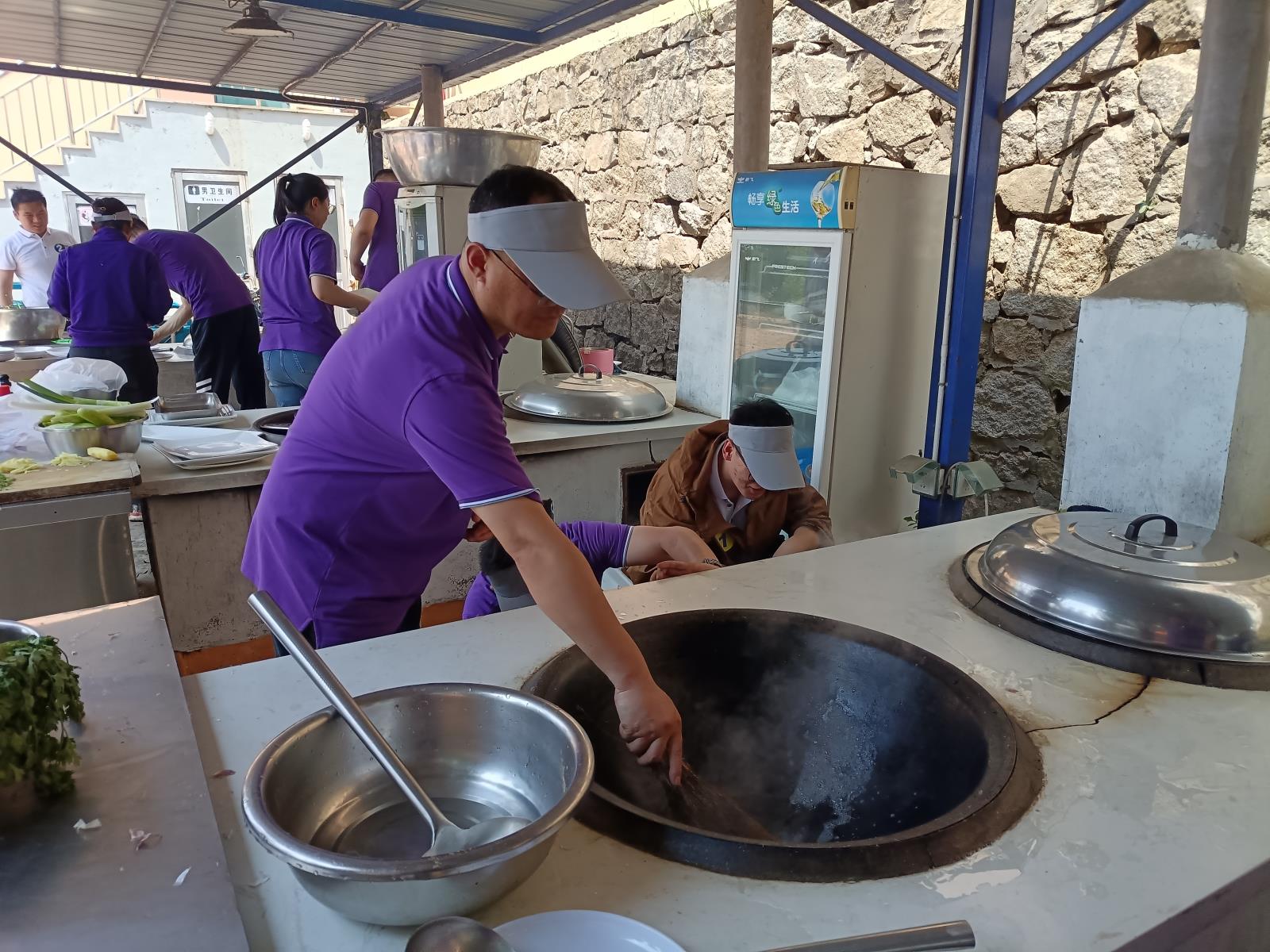 小伙伴們轉戰廚房,有的負責拾柴起灶,有的負責洗切配菜,有的負責掌勺做菜··· ···大家各顯身手,開啟一頓豐富的家常盛宴。